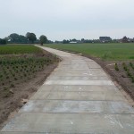 Onverharde paden zorgen in regenachtige periodes voor veel problemen. Denk bijvoorbeeld aan het vee wat wegzakt bij drassige gronden of machines welke diepe sporen achterlaten. Na verloop van tijd is het onverharde pad ontoegankelijk. Het probleem kan heel makkelijk opgelost worden door het plaatsen van betonplaten. Deze zijn snel leverbaar en indien nodig gemakkelijk te verleggen. Bij diverse kwekerijen mocht De Keij kavelpaden aanleggen. Hiervoor hebben wij verschillende soorten betonplaten gebruikt!
